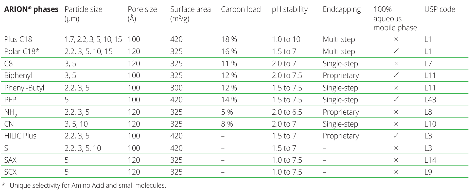 Dzięki zastosowaniu wysokoczystej krzemionki oraz precyzyjnie kontrolowanego procesu modyfikacji fazy stacjonarnej kolumny ARION oferują bardzo dobrą powtarzalność czasów retencji oraz wysoką sprawność.